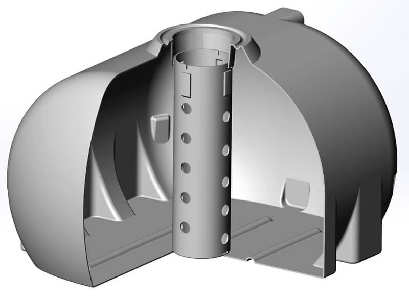 - Волнорез: Встроенная система препятствует распространению колебаний жидкости, снижая нагрузку на стенки и повышая безопасность перевозки.