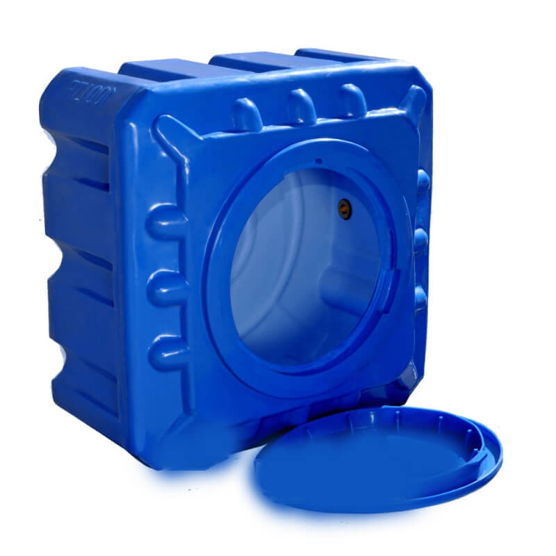Двухслойная квадратная емкость объемом 100 литров изготовлена из прочного полиэтилена методом ротационного формования, что обеспечивает её монолитность и отсутствие швов. Темный внешний слой предотвращает проникновение солнечных лучей, а гладкая внутренняя поверхность препятствует цветению воды и облегчает чистку. Данная емкость подходит как для хранения пищевых продуктов, так и для работы с химическими веществами.