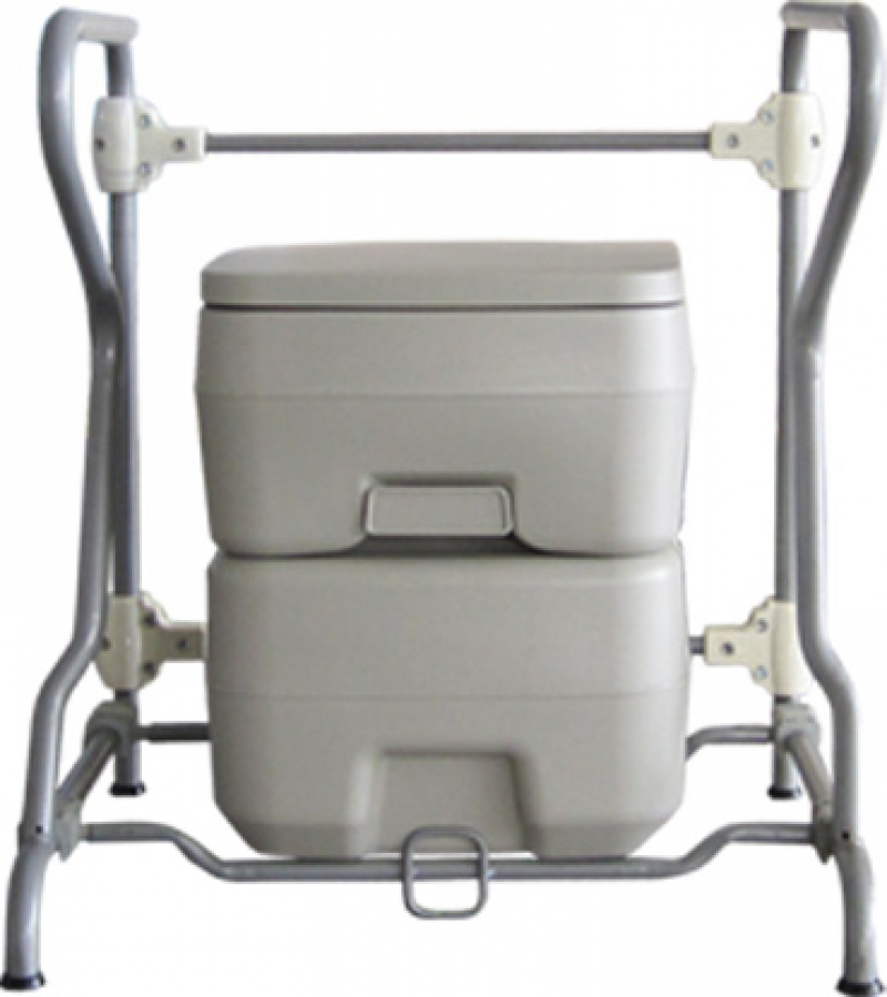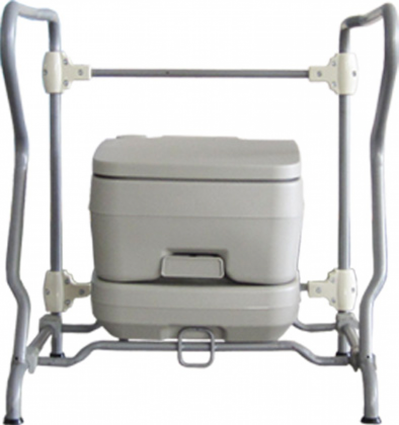 - Прочная и устойчивая конструкция: подставка надёжно фиксирует биотуалет, а поручни обеспечивают поддержку для легкого присаживания и вставания, что делает её отличным выбором для пожилых людей или лиц с ограниченными возможностями.