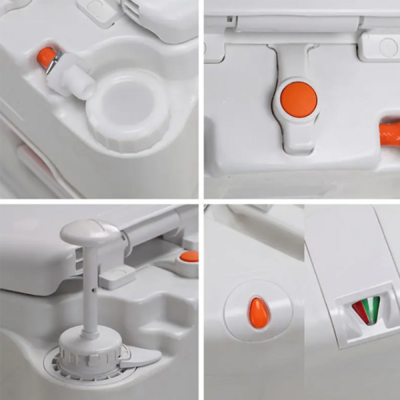 Увеличенные баки: верхний бак для воды объёмом 17 литров и нижний бак для отходов объёмом 24 литра позволяют использовать биотуалет длительное время без необходимости частой замены или очистки. Это делает модель рентабельной и удобной в эксплуатации.