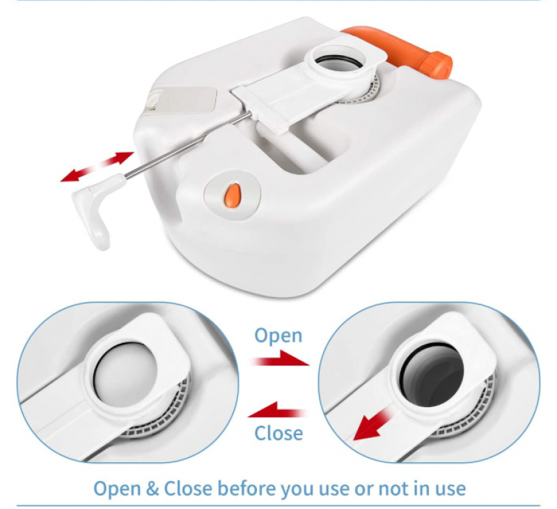 Простота транспортировки и удобство использования: нижний бак оснащён ручкой и двумя пластиковыми колёсами для лёгкого перемещения. Благодаря этому биотуалет можно легко транспортировать и обслуживать.