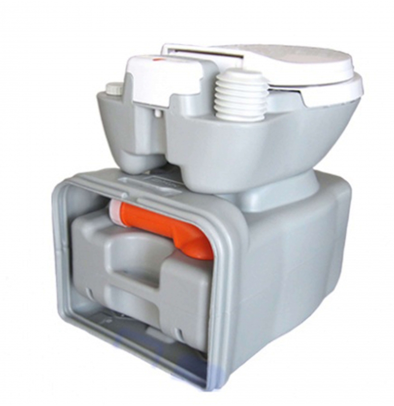 Этот биотуалет выполнен из прочного гладкого пластика, который легко очищается. Нижний приёмный бак с удобной ручкой и колёсами позволяет легко транспортировать биотуалет. Для работы электрической помпы биотуалет требует 8 батареек типа AA (в комплект не входят).