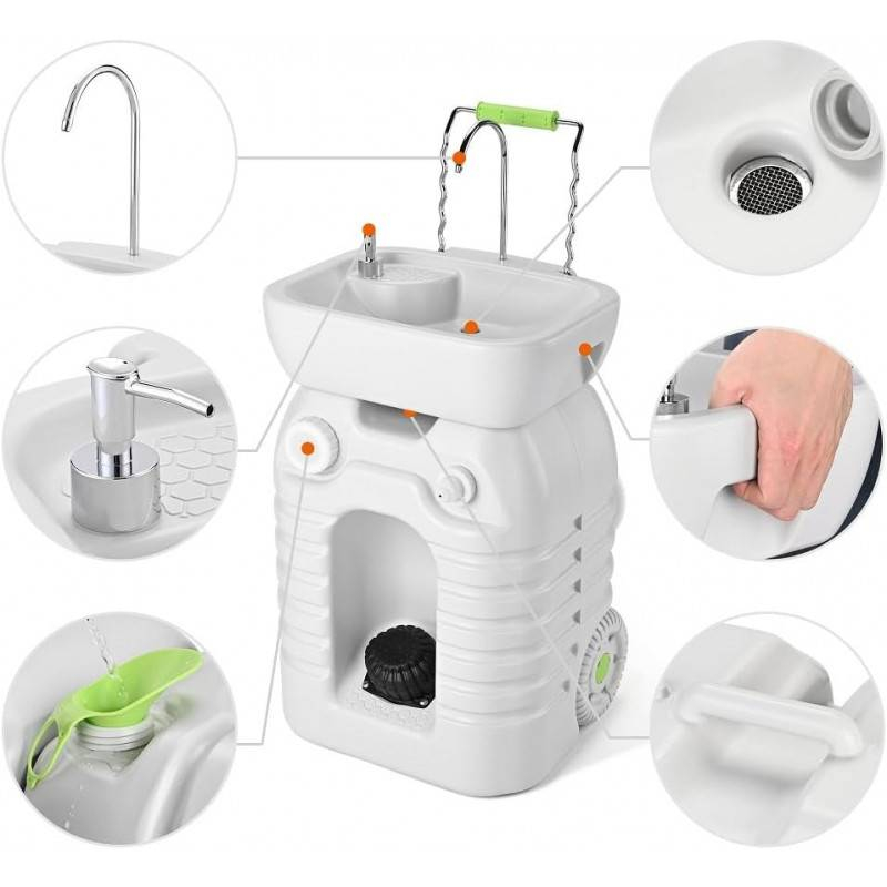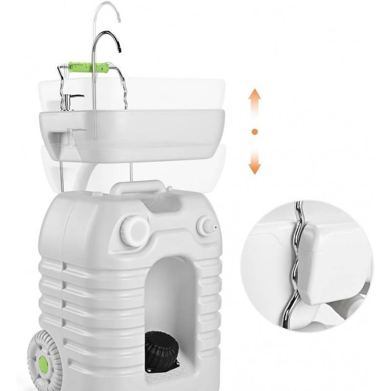 - Гигиеничность: ножная помпа, дозатор для мыла и вместительный бак для воды поддерживают высокий уровень санитарии.