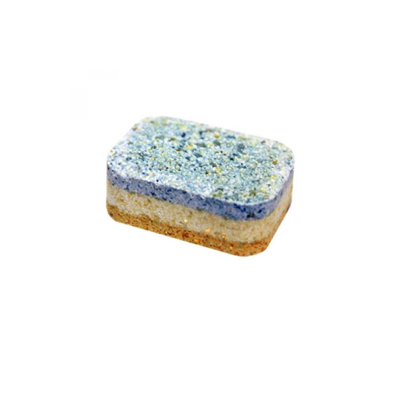 Продукт сочетает функции моющего средства, ополаскивателя, регенерирующей соли и защиты для стекла и нержавеющей стали. Каждая таблетка упакована индивидуально, что обеспечивает удобство в использовании и защиту от влаги.