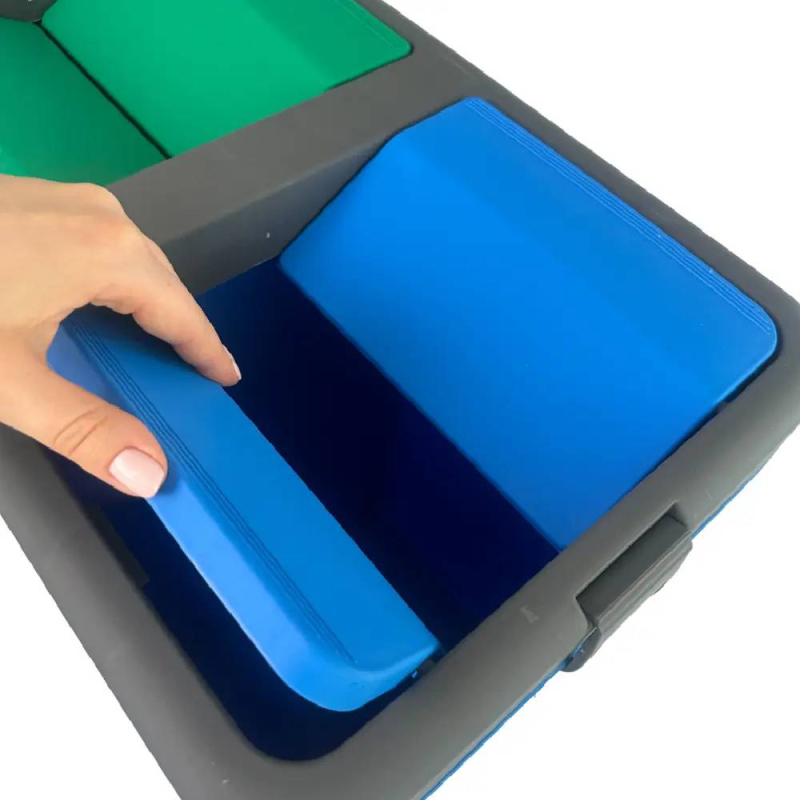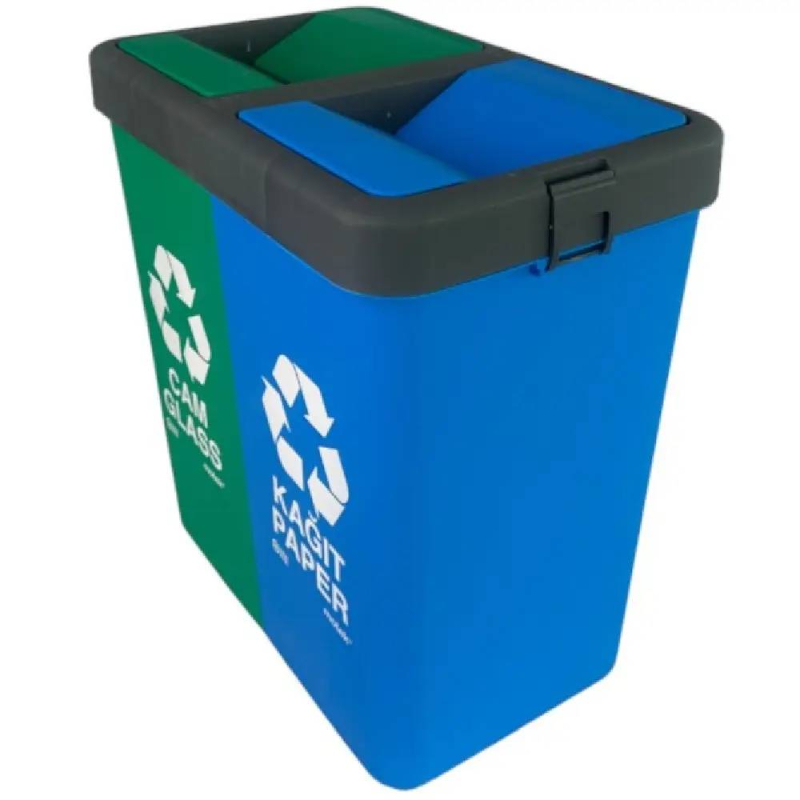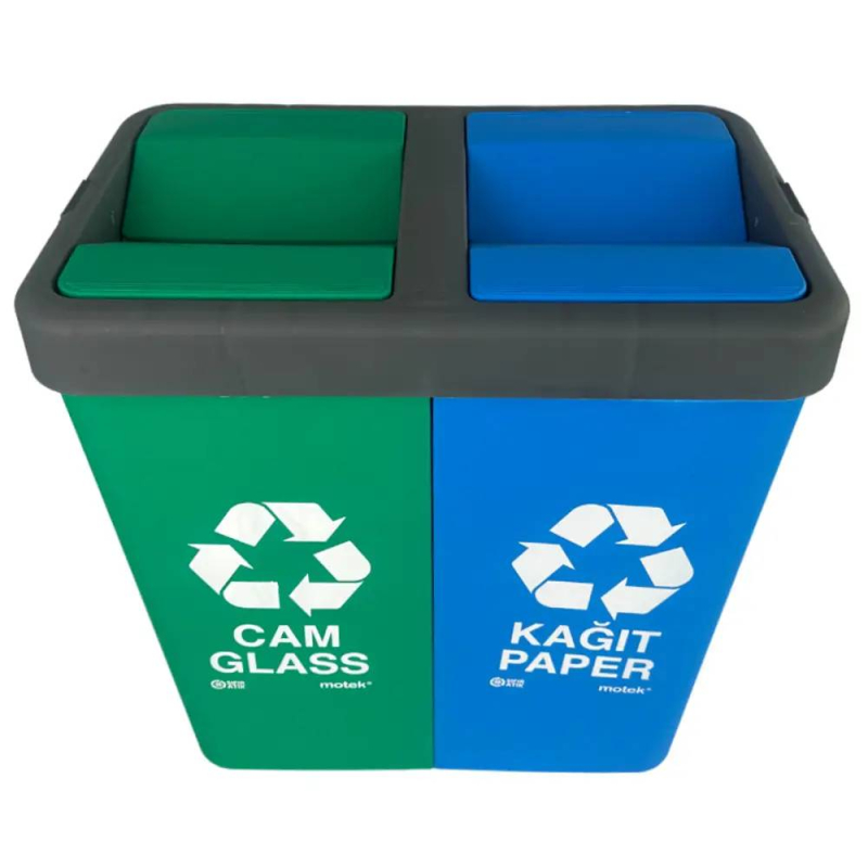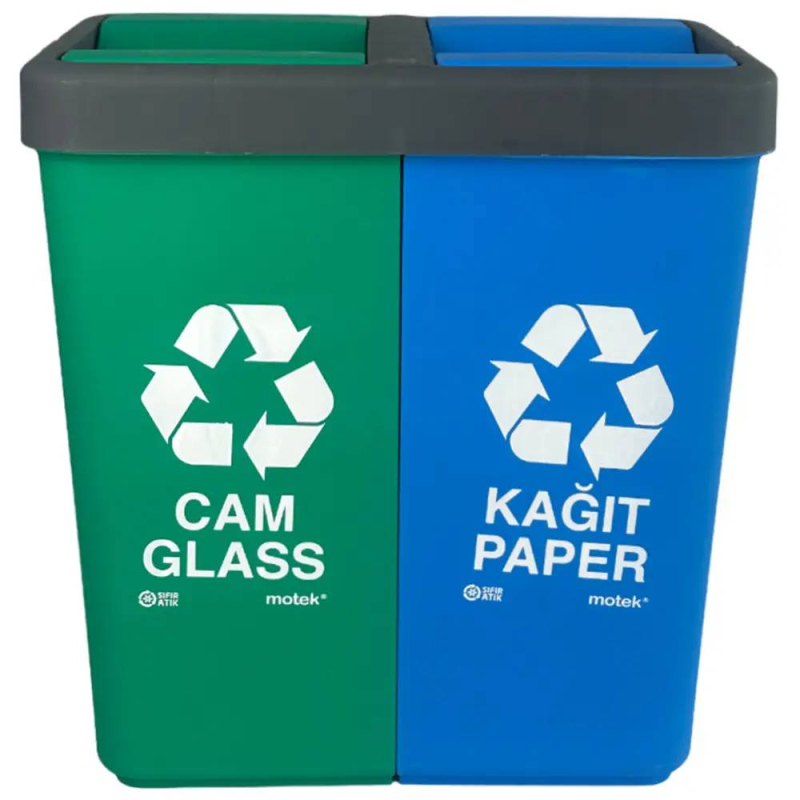 Контейнер для сортировки мусора двойной для бумаги и стекла 40+40 л CK-415 – это универсальный и практичный контейнер для раздельного сбора мусора, разработанный специально для сортировки бумажных и стеклянных отходов. Выполнен из прочного ABS пластика, который гарантирует долговечность и устойчивость к внешним воздействиям.