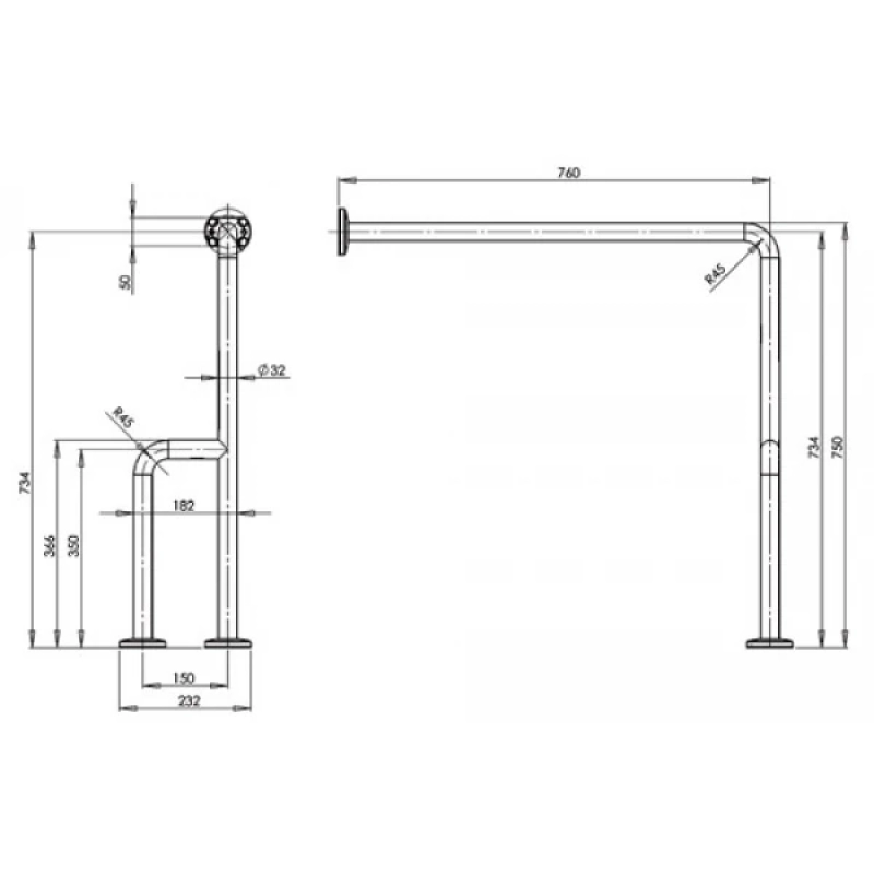 Поручень крепится к полу и стене. Для надежного монтажа стена должна быть несущей; в случае гипсокартонной стены необходимо предусмотреть закладные элементы.Преимущества: