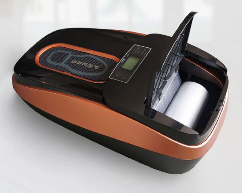 Устройство оснащено простым в управлении ЖК-экраном, который позволяет легко настраивать параметры работы аппарата. В приложенной инструкции подробно описано, как установить рулоны пленки ПВХ. -