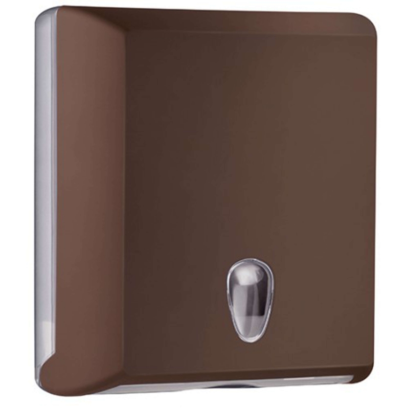 Держатель бумажных полотенец 706MA – это функциональный и стильный аксессуар для санитарных помещений, выполненный из прочного пластика с покрытием "Soft Touch" коричневого цвета. Корпус обладает эффектом "прорезиненной" поверхности, что обеспечивает приятные тактильные ощущения и дополнительную защиту от повреждений. Прозрачная задняя стенка упрощает контроль наполнения.