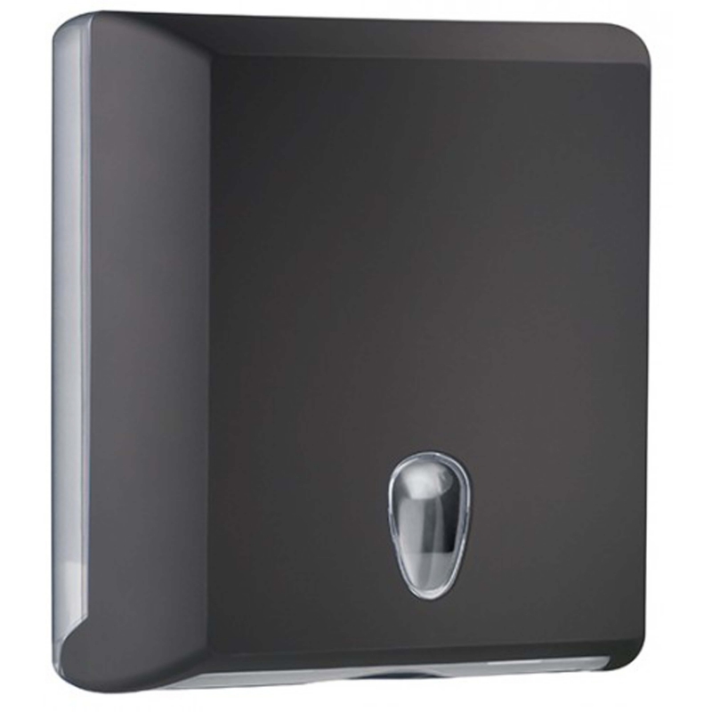 Держатель бумажных полотенец 706NE – современный и стильный аксессуар для оснащения санитарных помещений. Держатель выполнен из прочного пластика с покрытием "Soft Touch" черного цвета, что создает эффект "прорезиненной" поверхности, устойчивой к повреждениям, и обеспечивает привлекательный внешний вид. Задняя стенка из прозрачного пластика упрощает контроль наполнения.