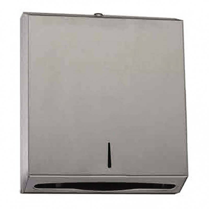 Держатель листовых бумажных полотенец V-укладки 200340-1 – это стильное и практичное решение для гигиенических помещений. Выполненный из полированной нержавеющей стали, корпус диспенсера сочетает эстетичный внешний вид с высокой прочностью и долговечностью.