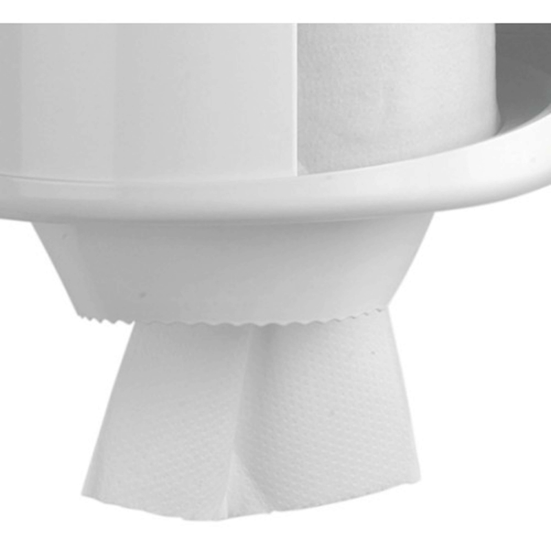 Антивандальная конструкция делает этот держатель идеальным для мест с высоким трафиком посещаемости. Устройство поддерживает рулоны с вытяжной гильзой диаметром до 250 мм, что делает его удобным для использования в ресторанах, поликлиниках, лабораториях, спортивных клубах и других общественных местах.