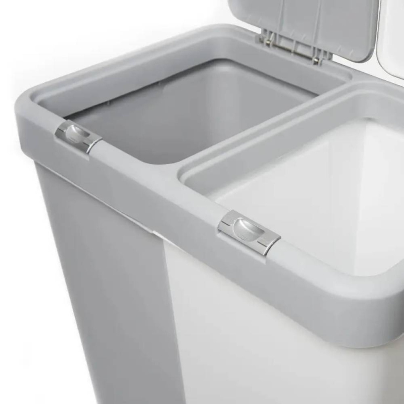 Корзина изготовлена из прочного пластика, который устойчив к воздействию влаги и сохраняет эстетичный вид в течение долгого времени. Автоматическое открытие крышек обеспечивает гигиеничность и удобство, а съемная крышка надежно закрывает корзину.