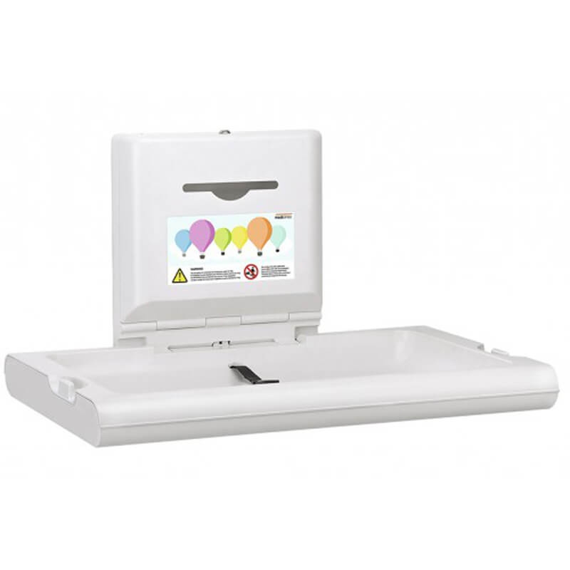 Этот пеленальный столик является идеальным решением для санитарных помещений в общественных местах, таких как рестораны, торговые центры, кинотеатры, аквапарки и другие общественные зоны, где важны безопасность, гигиена и удобство для родителей и детей.