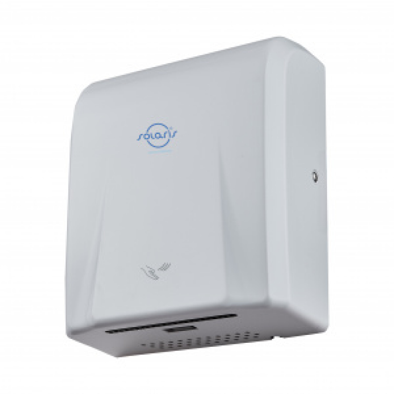 Скорость воздушного потока 90 м/с обеспечивает быструю сушку рук за 8–12 секунд. Устройство автоматически включается при поднесении рук, обеспечивая удобство и гигиеничность использования.