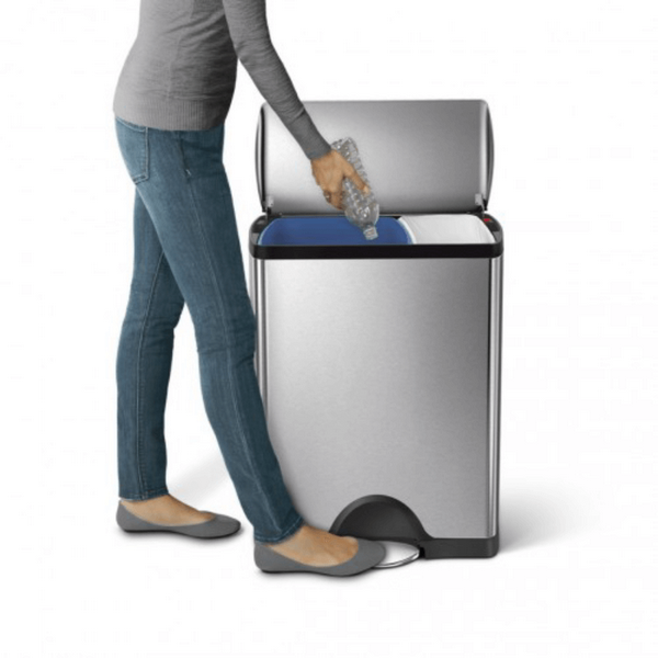 - Двухсекционная конструкция: позволяет легко разделять мусор и вторсырье.
