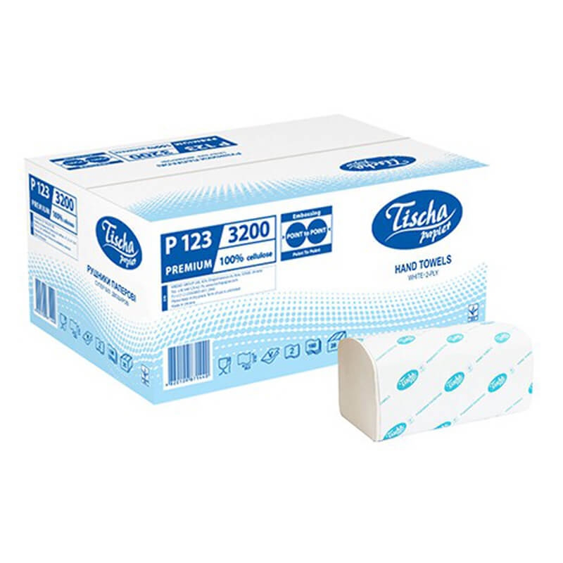 Бумажные полотенца PREMIUM P123 из 100% белой целлюлозы сочетают в себе мягкость, прочность и превосходные впитывающие свойства. Благодаря технологии point-to-point с клеем, эти полотенца отличаются уникальной текстурой: верхний слой покрыт многоуровневым тиснением, а нижний — микротиснением. Двухслойная структура склеена для повышения влагопрочности и прочности.