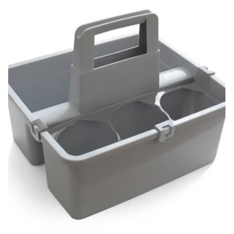Изготовленный из прочного серого полипропилена, лоток обладает высокой устойчивостью к повреждениям и легким весом. Двойная конструкция корзины обеспечивает удобство распределения инвентаря, позволяя сохранять порядок и экономить время при уборке.