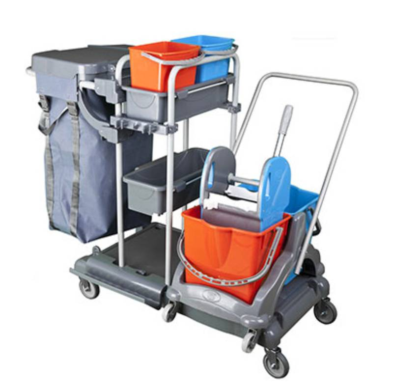 Уборочная тележка KA451FB – это практичный и функциональный инструмент для проведения влажной уборки в офисах, гостиницах, ресторанах, торговых центрах и других коммерческих объектах. Она обеспечивает удобство работы благодаря эргономичному дизайну и качественным материалам.