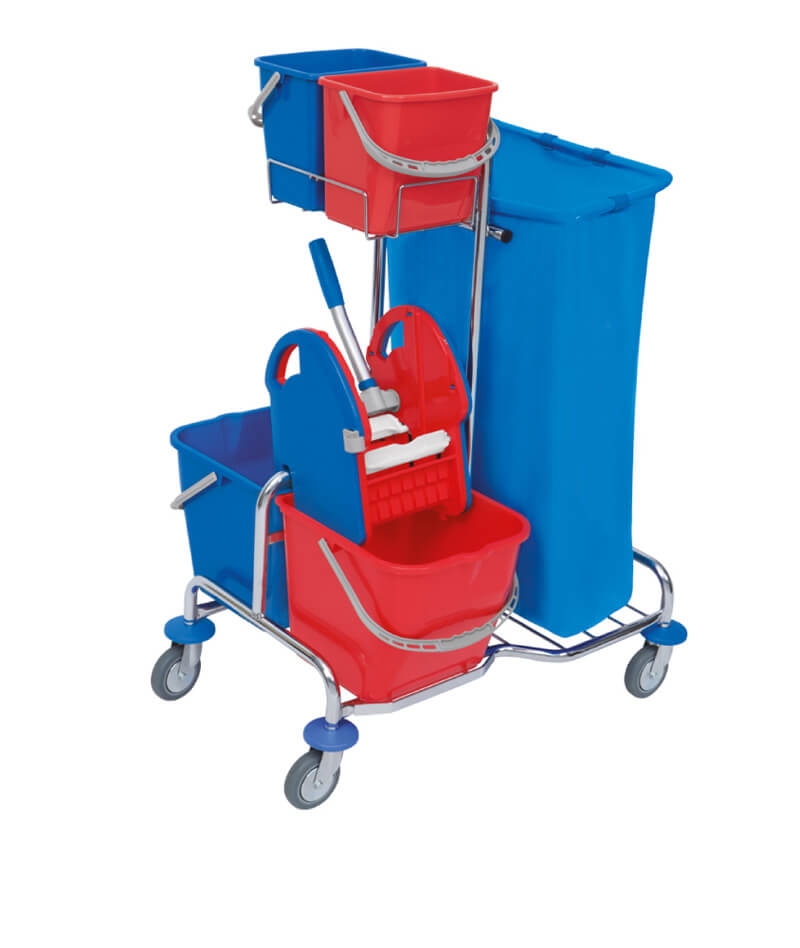 Тележка 02.20.120.KW.CH подходит для уборки в офисах, торговых центрах, гостиницах, медицинских учреждениях и других коммерческих объектах. -