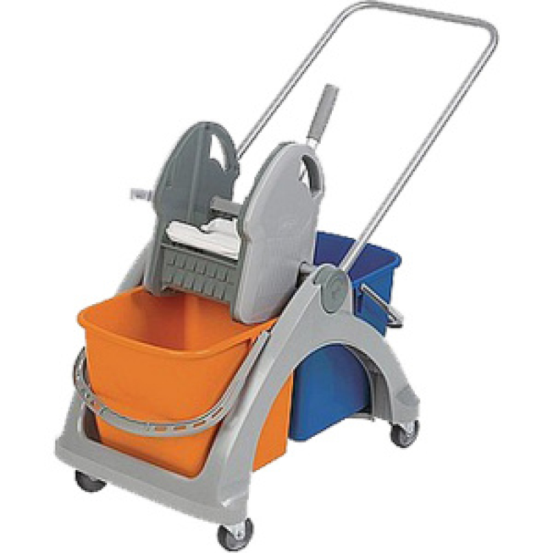 Оснащённая двумя ведрами объёмом по 25 литров, тележка позволяет легко разделять чистую и грязную воду, упрощая процесс уборки. Встроенный отжим для мопов способствует быстрому и эффективному очищению рабочих инструментов, что экономит время и силы.