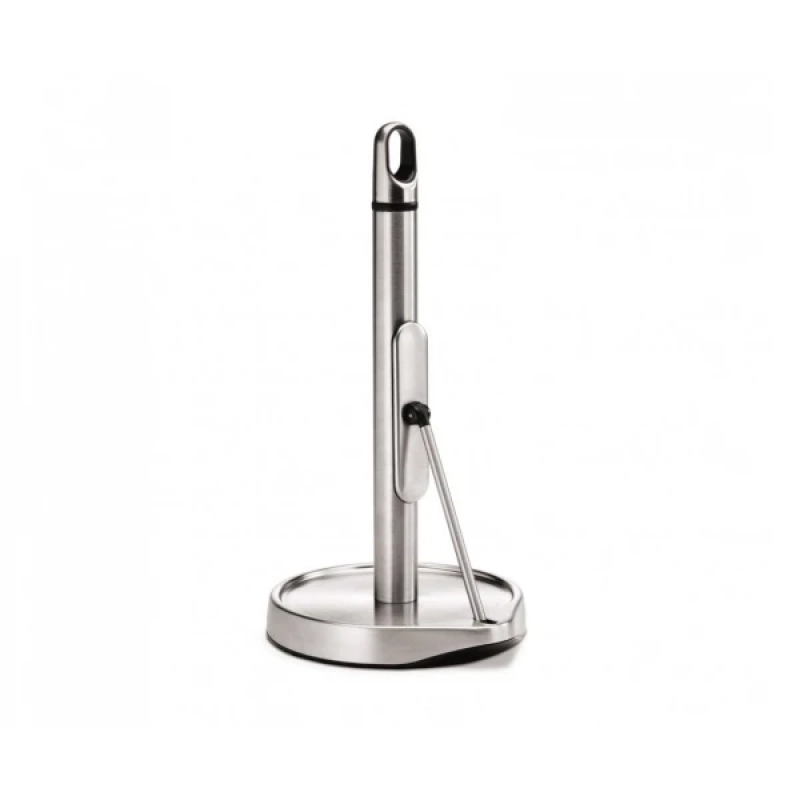 Оснащений важелем натягу, який створює опір, дозволяючи відривати папір однією рукою. Зручна ручка полегшує перенесення тримача, а важка основа забезпечує його стійкість. Тримач підходить для рулонів із перфорацією діаметром до 200 мм.