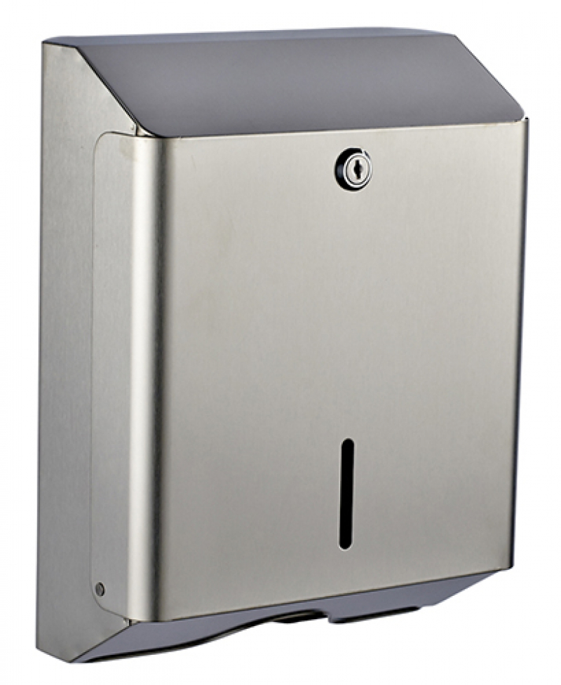 Тримач паперових рушників ZG-1408S – це універсальна модель для розміщення паперових рушників V- і Z-складання, розроблена для місць із високою прохідністю. Корпус виконаний із матової нержавіючої сталі марки AISI 304, що робить пристрій міцним і довговічним, стійким до пошкоджень і інтенсивної експлуатації.